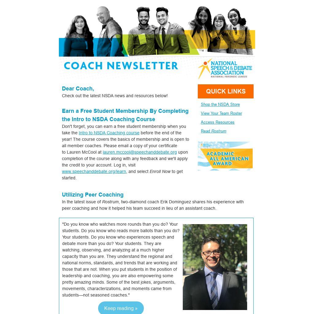 "Do you know who watches more rounds than you do? Your students. Do you know who reads more ballots than you do? Your students. Do you know who experiences speech and debate more than you do? Your students. They are watching, observing, and analyzing at a much higher capacity than you are. They understand the regional and national norms, standards, and trends that are working and those that are not. When you put students in the position of leadership and coaching, you are also empowering some pretty amazing minds. Some of the best jokes, arguments, movements, characterizations, and moments came from students—not seasoned coaches."