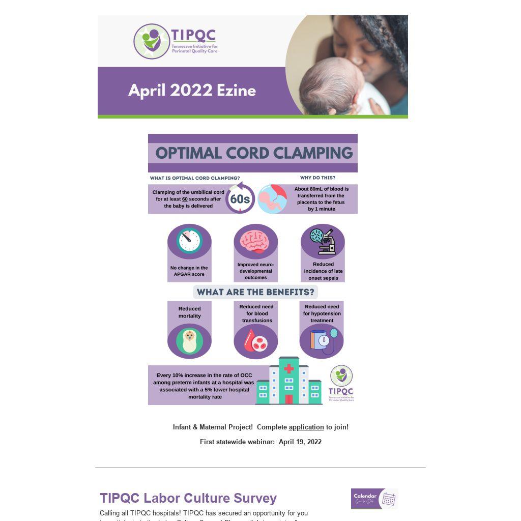 Calling all TIPQC hospitals! TIPQC has secured an opportunity for you to participate in the Labor Culture Survey! Please click to register & complete the LCS Registration Form. This is a basic informational form so that the survey can be customized to each hospital’s needs. Only ONE representative from each hospital needs to be identified and fill out the information. Deadline to register: April 8, 2022.