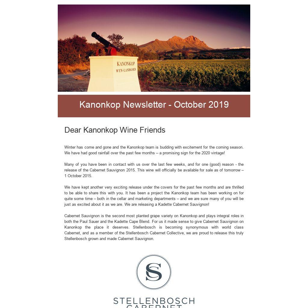 Kanonkop Newsletter - October 2019