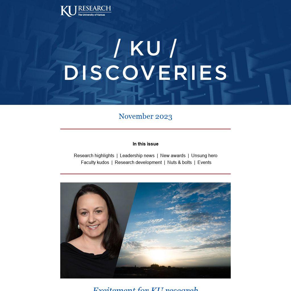 Thank you for the warm welcome as I assume the role of interim vice chancellor for research. Since starting the job two weeks ago, I have been asked, “Are you excited for KU research?” My answer is simple and emphatic: “Yes!”