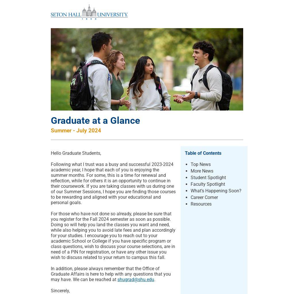 In addition, please always remember that the Office of Graduate Affairs is here to help with any questions that you may have. We can be reached at shugrad@shu.edu.