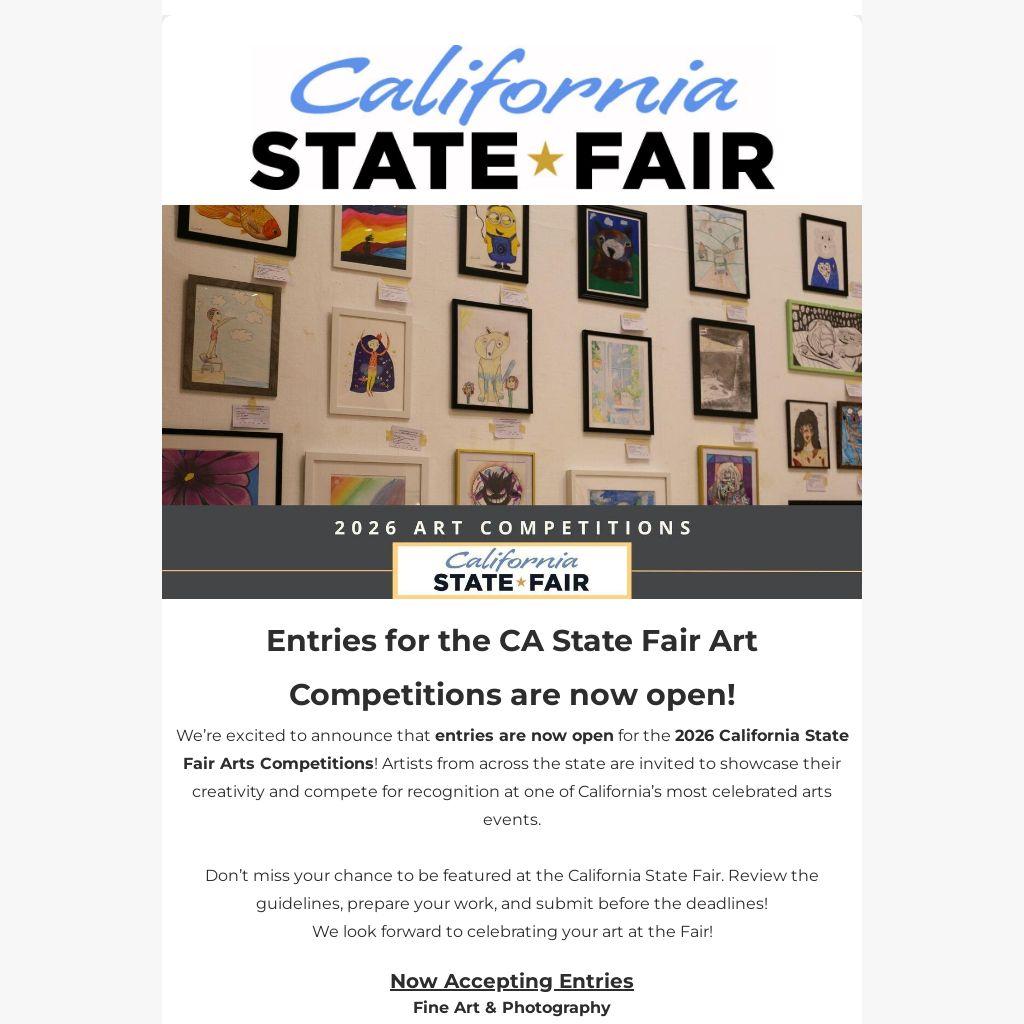 Entries for the CA State Fair Art Competitions are now open!