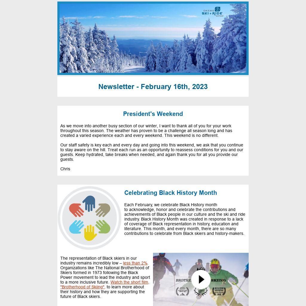 As we move into another busy section of our winter, I want to thank all of you for your work throughout this season. The weather has proven to be a challenge all season long and has created a varied experience each and every weekend. This weekend is no different.