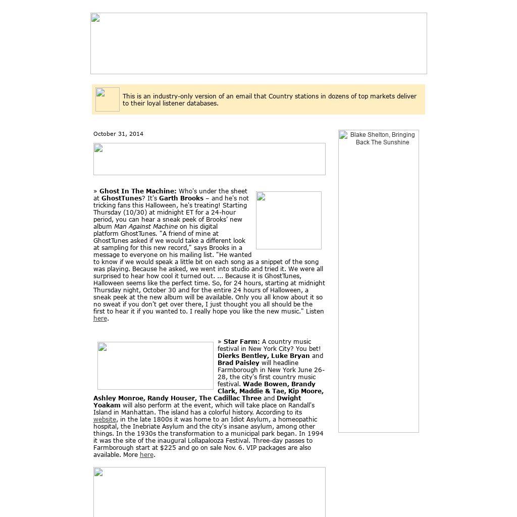 | This is an industry-only version of an email that Country stations in dozens of top markets deliver