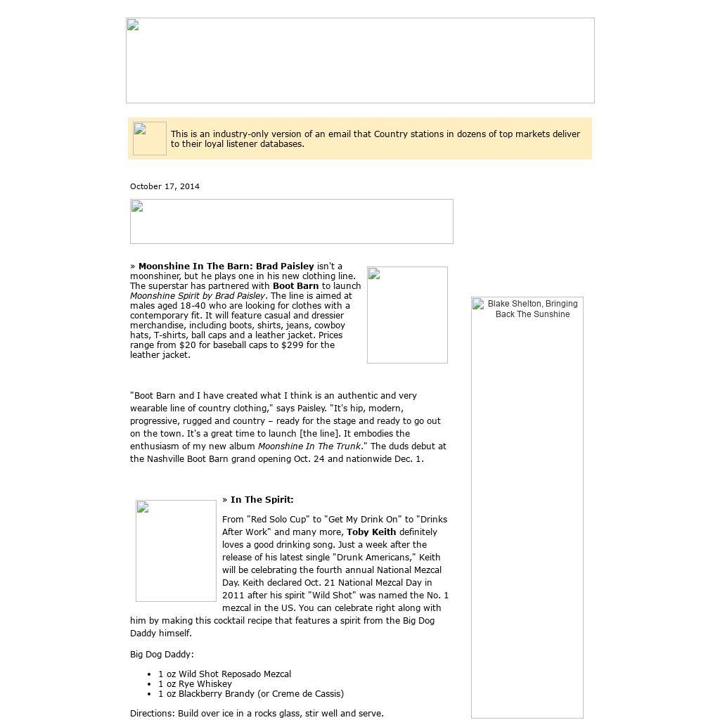 On TV Friday (10/17): Dustin Lynch, GAC Top 20 Countdown (GAC); Florida Georgia Line, CMT Instant Jam (CMT); Whitney Duncan, The Amazing Race (CBS). Monday (10/18): Blake Shelton, The Voice (NBC).