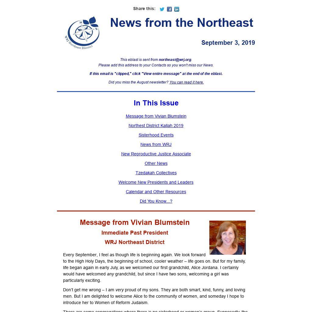 This eblast is sent from northeast@wrj.org.