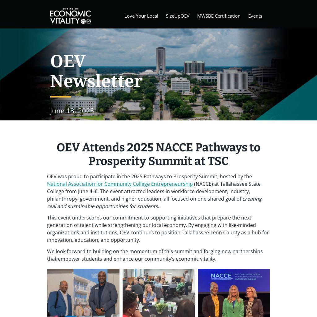 Delve into past issues of the OEV Newsletter to catch up on updates, insights, economic development initiatives, programs, and opportunities in Tallahassee-Leon County!