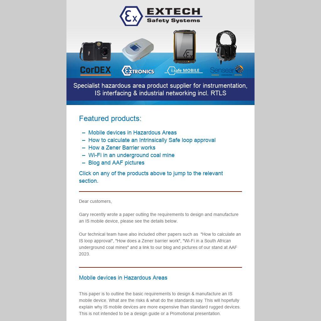 Our technical team have also included other papers such as "How to calculate an IS loop approval", "How does a Zener barrier work", "Wi-Fi in a South African underground coal mines" and a link to our blog and pictures of our stand at AAF 2023.