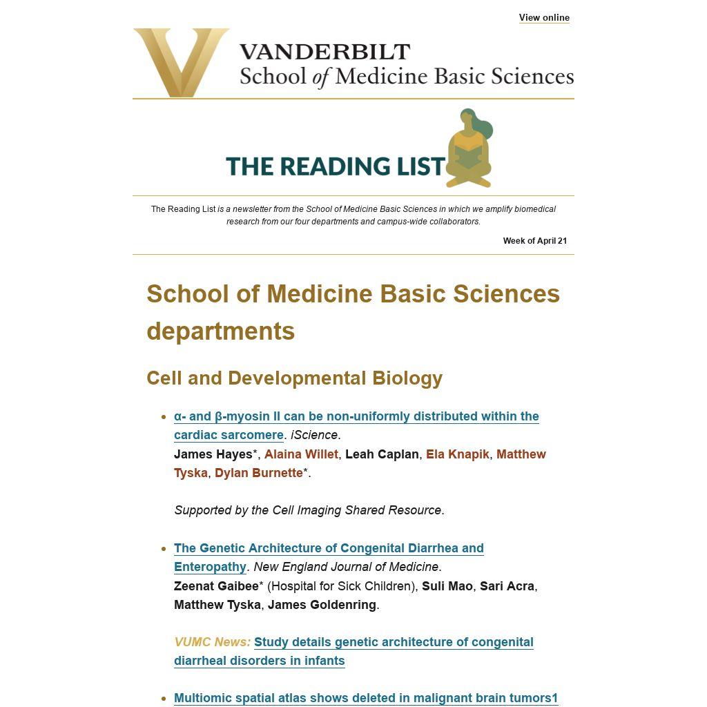 The Reading List is a newsletter from the School of Medicine Basic Sciences in which we amplify biomedical research from our four departments and campus-wide collaborators.