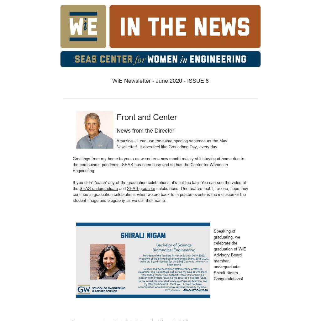 Greetings from my home to yours as we enter a new month mainly still staying at home due to the coronavirus pandemic. SEAS has been busy and so has the Center for Women in Engineering.