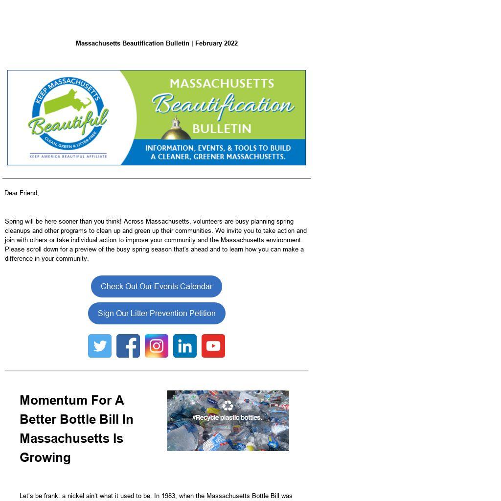 If thousands of people across Massachusetts take individual action, collectively, we will all be keeping Massachusetts beautiful!