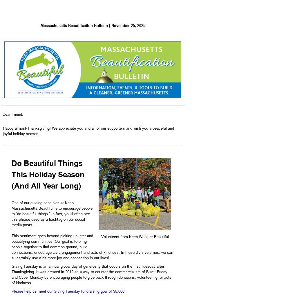 One of our guiding principles at Keep Massachusetts Beautiful is to encourage people to “do beautiful things.” In fact, you’ll often see this phrase used as a hashtag on our social media posts.