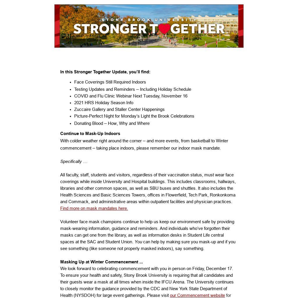 Contact us at strongertogether@stonybrook.edu with any questions/comments/ideas.