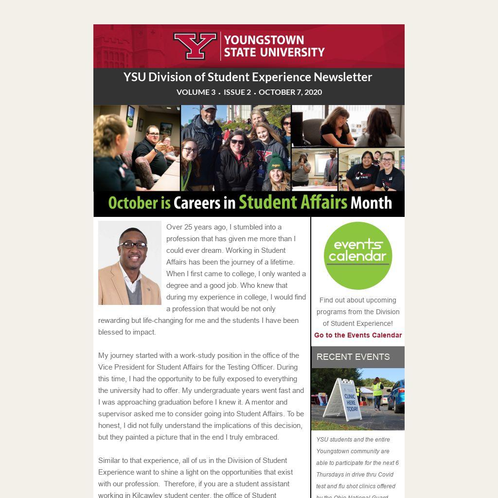 Similar to that experience, all of us in the Division of Student Experience want to shine a light on the opportunities that exist with our profession. Therefore, if you are a student assistant working in Kilcawley student center, the office of Student Activities, Residence Life, or Andrews Student Recreation and Wellness Center, we want you to consider the impact that you are making on our students each day. This might be an opportunity for you to join us on this journey of influencing lives.