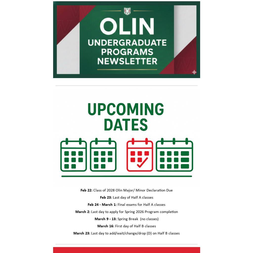 Feb 22: Class of 2028 Olin Major/ Minor Declaration Due