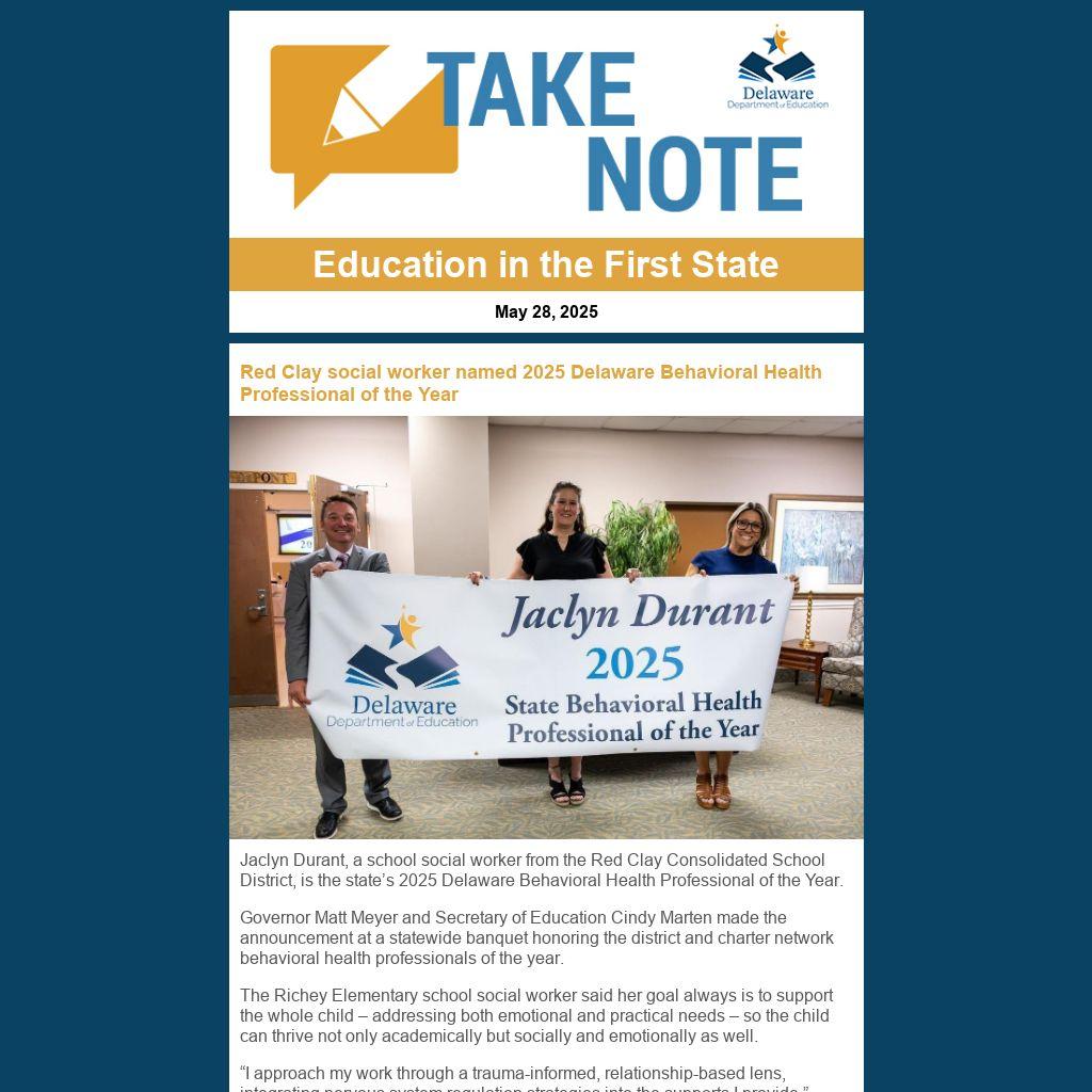 Governor Matt Meyer and Secretary of Education Cindy Marten made the announcement at a statewide banquet honoring the district and charter network behavioral health professionals of the year.