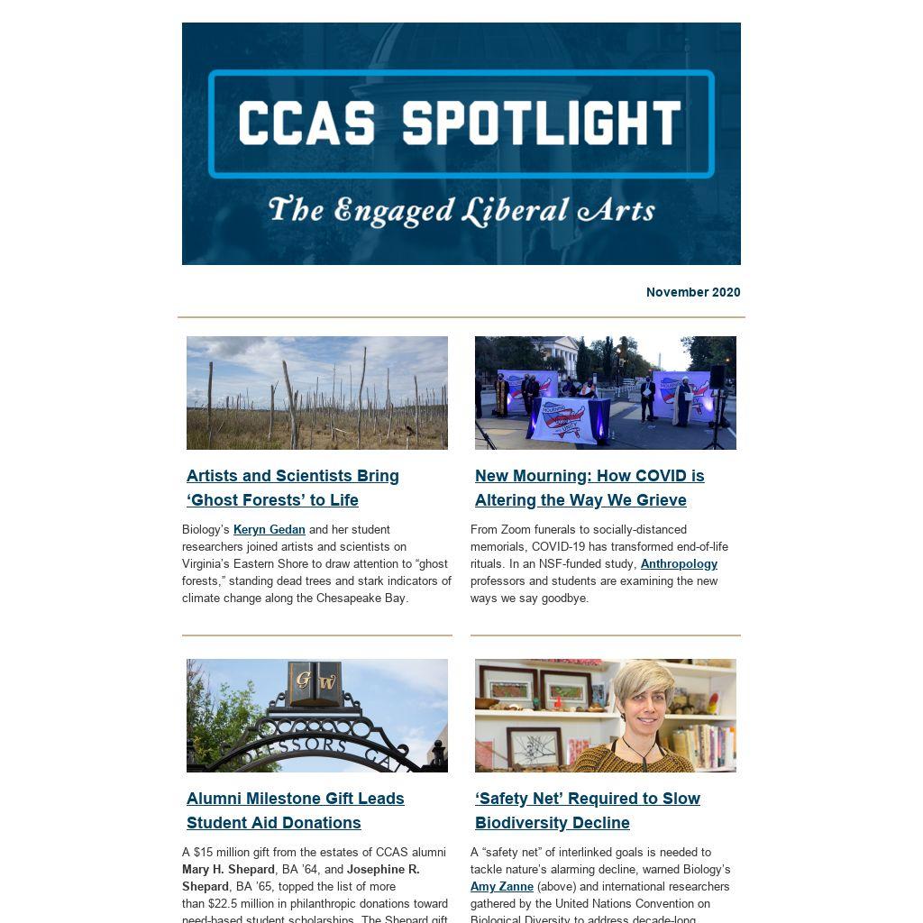 A $15 million gift from the estates of CCAS alumni Mary H. Shepard, BA ’64, and Josephine R. Shepard, BA ’65, topped the list of more than $22.5 million in philanthropic donations toward need-based student scholarships. The Shepard gift is the largest one-time alumni donation in GW’s history.