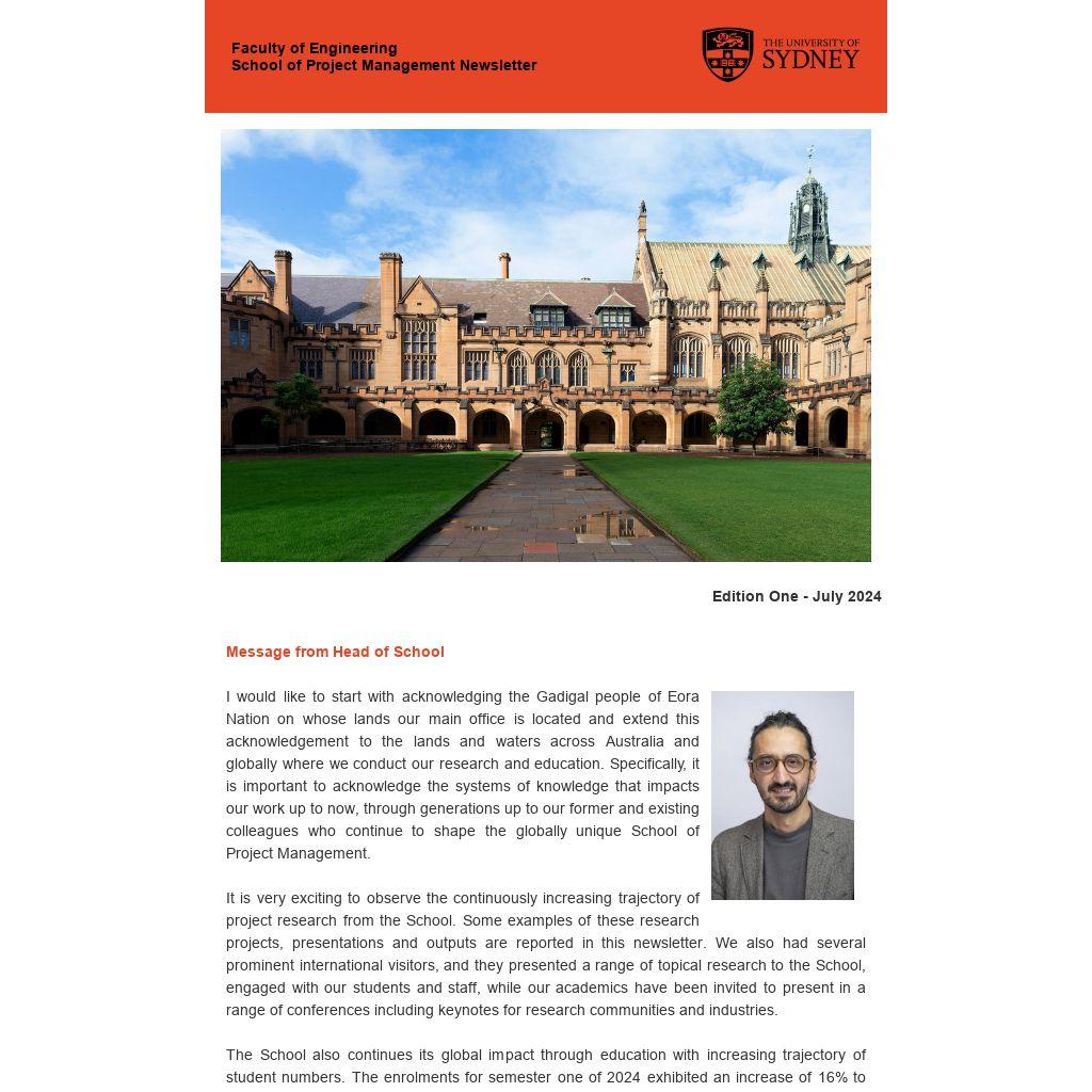 Sydney University is home to a very unique School of Project Management, Faculty of Engineering, a highly interdisciplinary school with Scholars who have passion about "Projects" for global grand challenges.