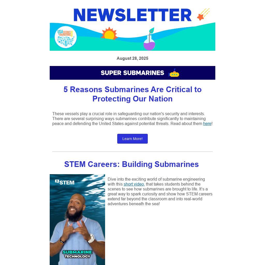 Dive into the exciting world of submarine engineering with this short video, that takes students behind the scenes to see how submarines are brought to life. It’s a great way to spark curiosity and show how STEM careers extend far beyond the classroom and into real-world adventures beneath the sea!