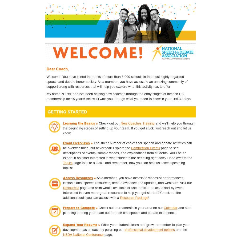 My name is Lisa, and I've been helping new coaches through the early stages of their NSDA membership for 15 years! Below I'll walk you through what you need to know in your first 30 days.