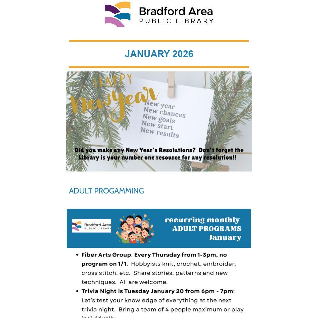 We appreciate any support to the Bradford Area Public Library with your end of year giving.