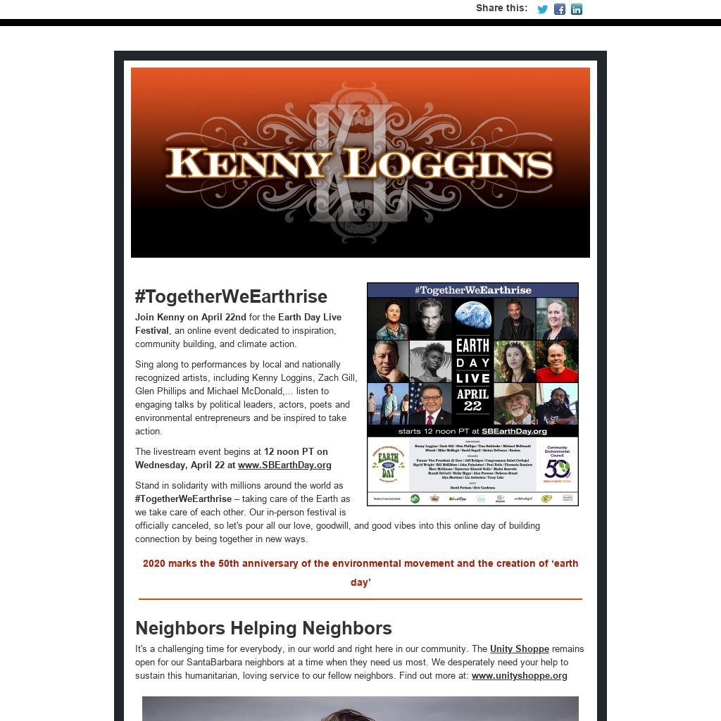 Join Kenny on April 22nd for the Earth Day Live Festival, an online event dedicated to inspiration, community building, and climate action.