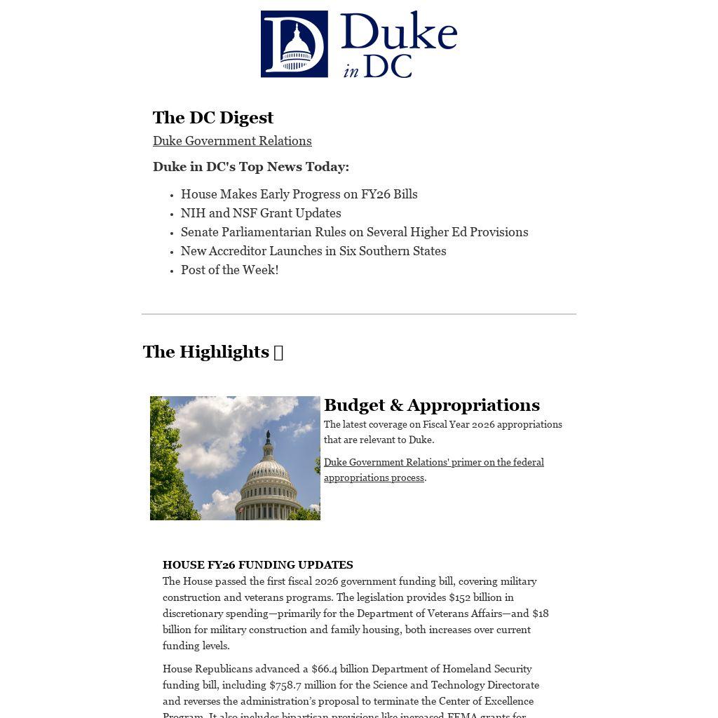 The House passed the first fiscal 2026 government funding bill, covering military construction and veterans programs. The legislation provides $152 billion in discretionary spending—primarily for the Department of Veterans Affairs—and $18 billion for military construction and family housing, both increases over current funding levels.