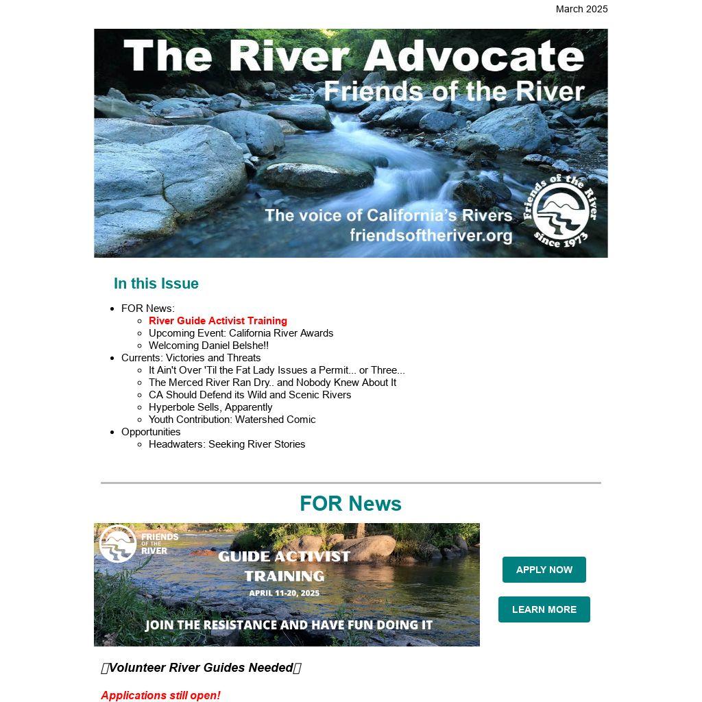We are excited to bring you this month’s Currents articles, which highlight key news about California's rivers, and what FOR is doing to protect them.