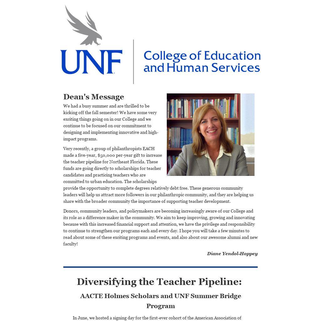 Dean's MessageWe had a busy summer and are thrilled to be kicking off the fall semester! We have some very exciting things going on in our College and we continue to be focused on our commitment to designing and implementing innovative and high-impact programs.