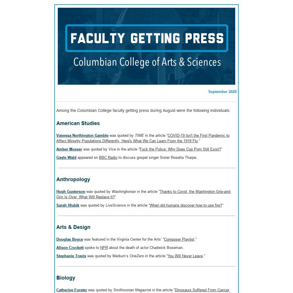 Columbian College of Arts and Sciences 801 22nd St. NW