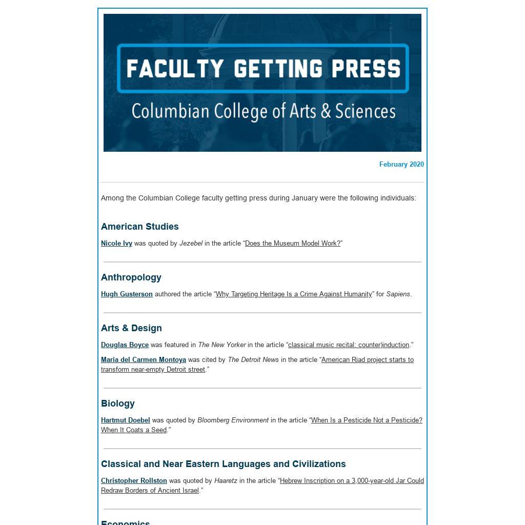 Columbian College of Arts and Sciences 801 22nd St. NW