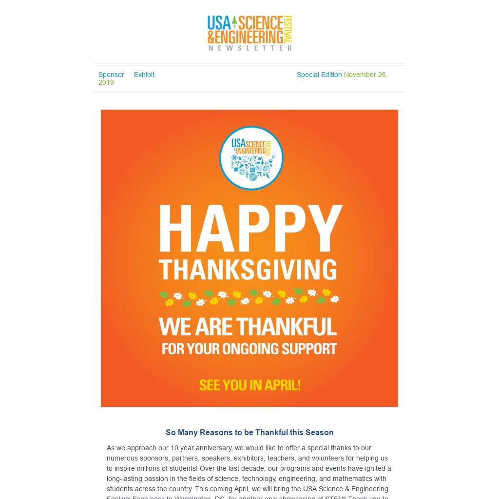 We want to extend our heartfelt appreciation to our very special Sponsors who have signed up to support events for the USA Science & Engineering Festival.