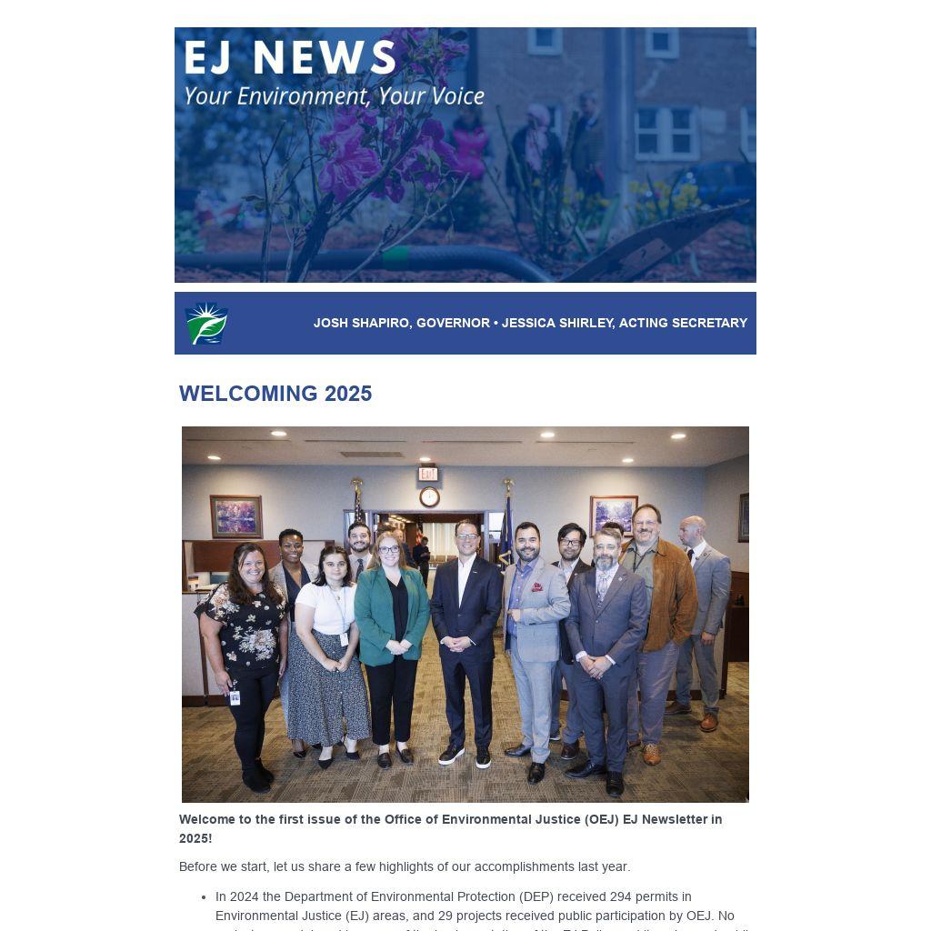 Welcome to the first issue of the Office of Environmental Justice (OEJ) EJ Newsletter in 2025!