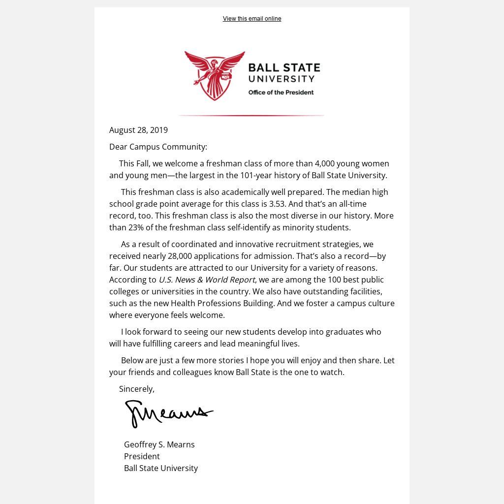 Below are just a few more stories I hope you will enjoy and then share. Let your friends and colleagues know Ball State is the one to watch.