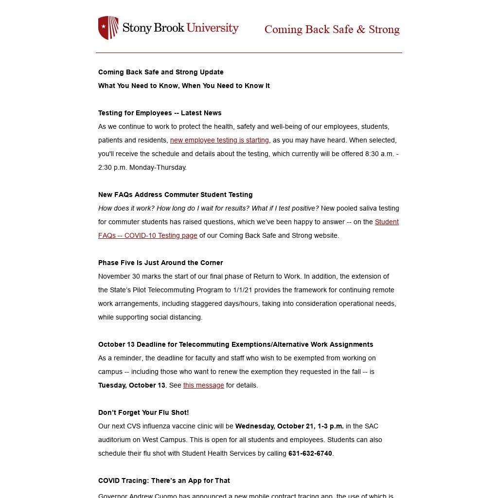 As a reminder, the deadline for faculty and staff who wish to be exempted from working on campus -- including those who want to renew the exemption they requested in the fall -- is Tuesday, October 13. See this message for details.