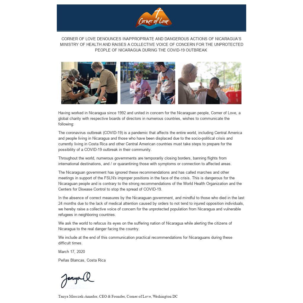 16. Voluntary self-quarantine in the event of no announcements or if appropriate precautions are not taken by Nicaraguan authorities.
