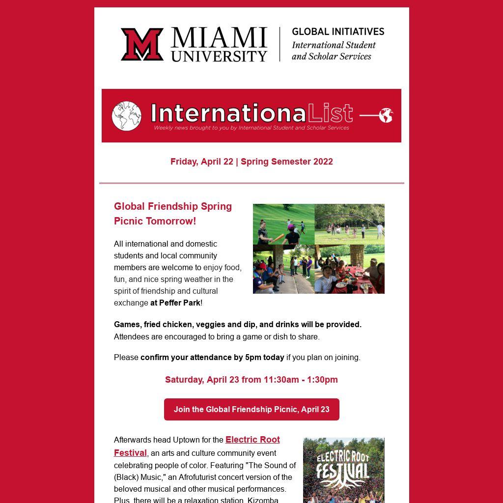 Please consider passing forward to ISSS! We will be creating a space to share these items with new incoming international students for Fall 2022. Please reachout to Dan Sinetar, dansinetar@MiamiOH.edu, directly for more details.