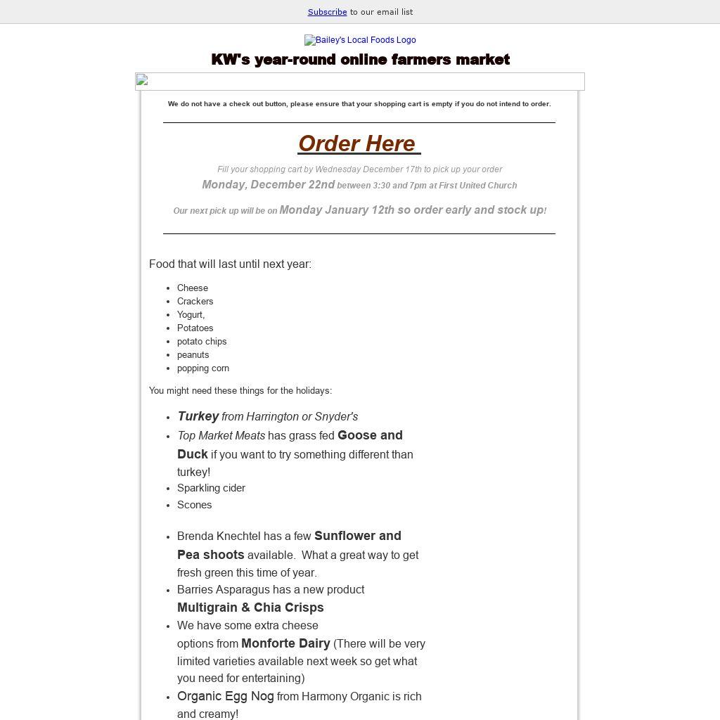 Fill your shopping cart by Wednesday December 17th to pick up your order