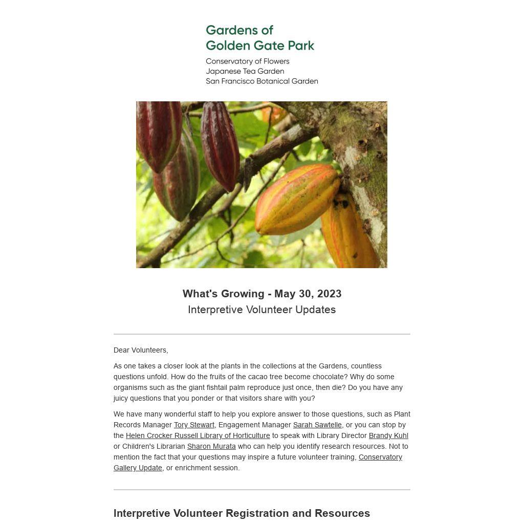 | What's Growing - May 30, 2023Interpretive Volunteer Updates