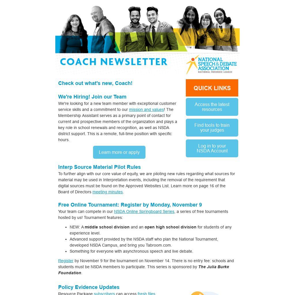 - Advanced support provided by the NSDA staff who plan the National Tournament, developed NSDA Campus, and bring you Tabroom.com.