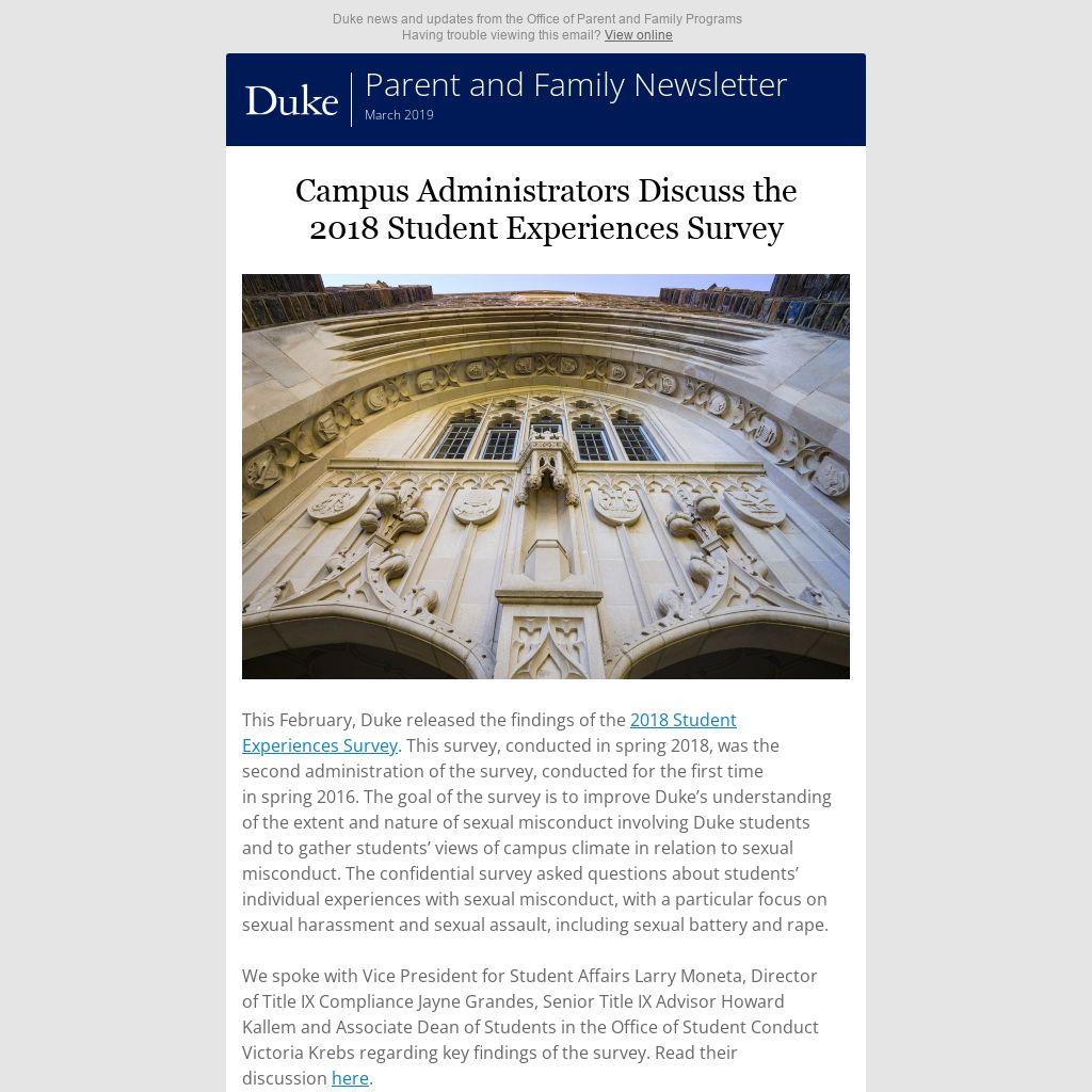 This February, Duke released the findings of the 2018 Student Experiences Survey. This survey, conducted in spring 2018, was the second administration of the survey, conducted for the first time in spring 2016. The goal of the survey is to improve Duke’s understanding of the extent and nature of sexual misconduct involving Duke students and to gather students’ views of campus climate in relation to sexual misconduct. The confidential survey asked questions about students’ individual experiences with sexual misconduct, with a particular focus on sexual harassment and sexual assault, including sexual battery and rape.