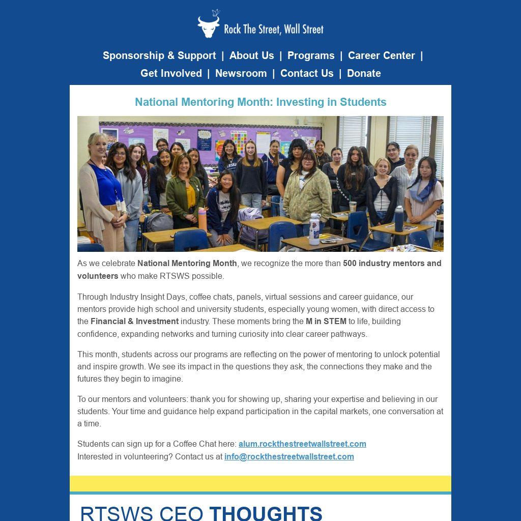 As we celebrate National Mentoring Month, we recognize the more than 500 industry mentors and volunteers who make RTSWS possible.