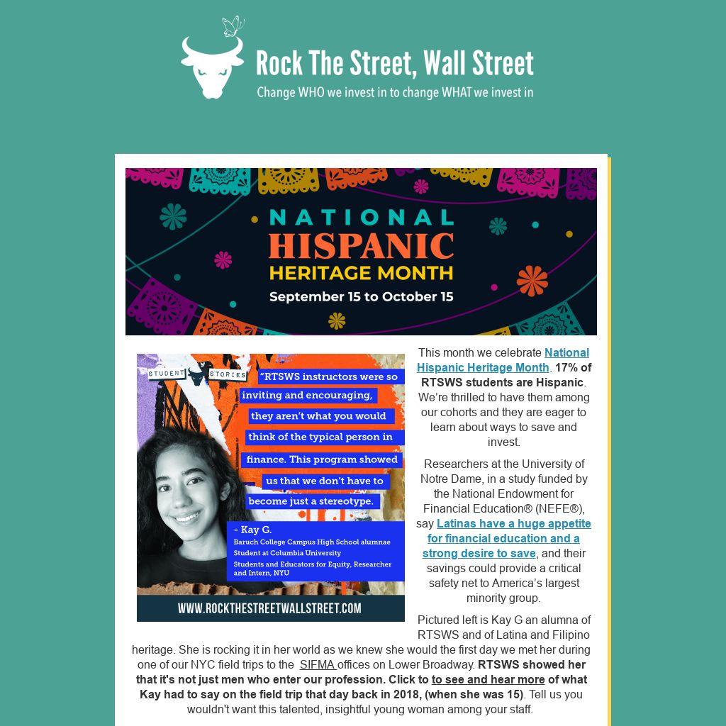 | This month we celebrate National Hispanic Heritage Month. 17% of RTSWS students are Hispanic. We’re thrilled to have them among our cohorts and they are eager to learn about ways to save and invest.