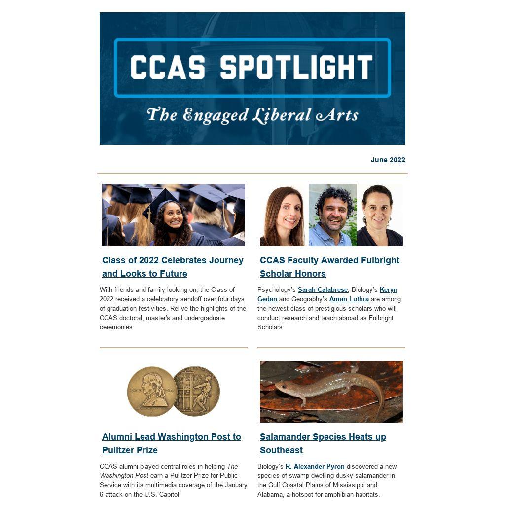 With friends and family looking on, the Class of 2022 received a celebratory sendoff over four days of graduation festivities. Relive the highlights of the CCAS doctoral, master's and undergraduate ceremonies.