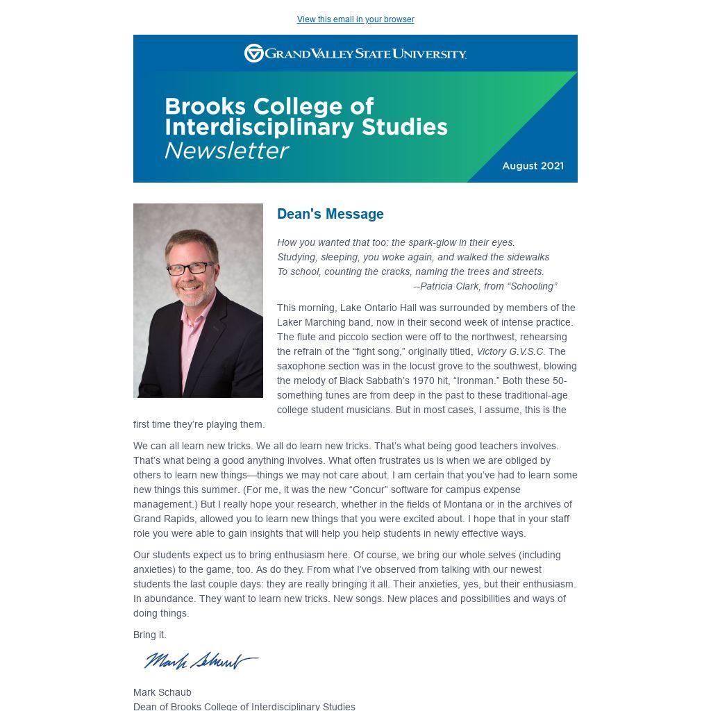 Mark Schaub Dean of Brooks College of Interdisciplinary Studies