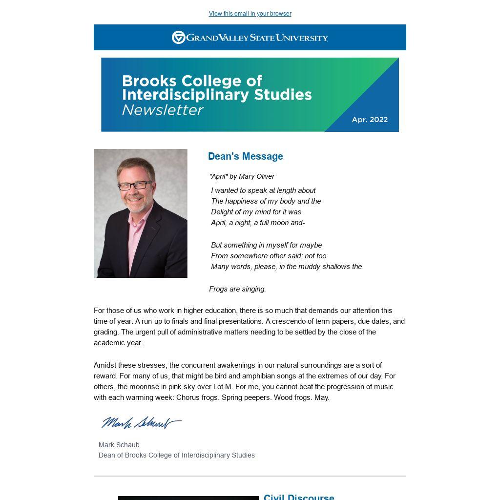 Mark Schaub Dean of Brooks College of Interdisciplinary Studies