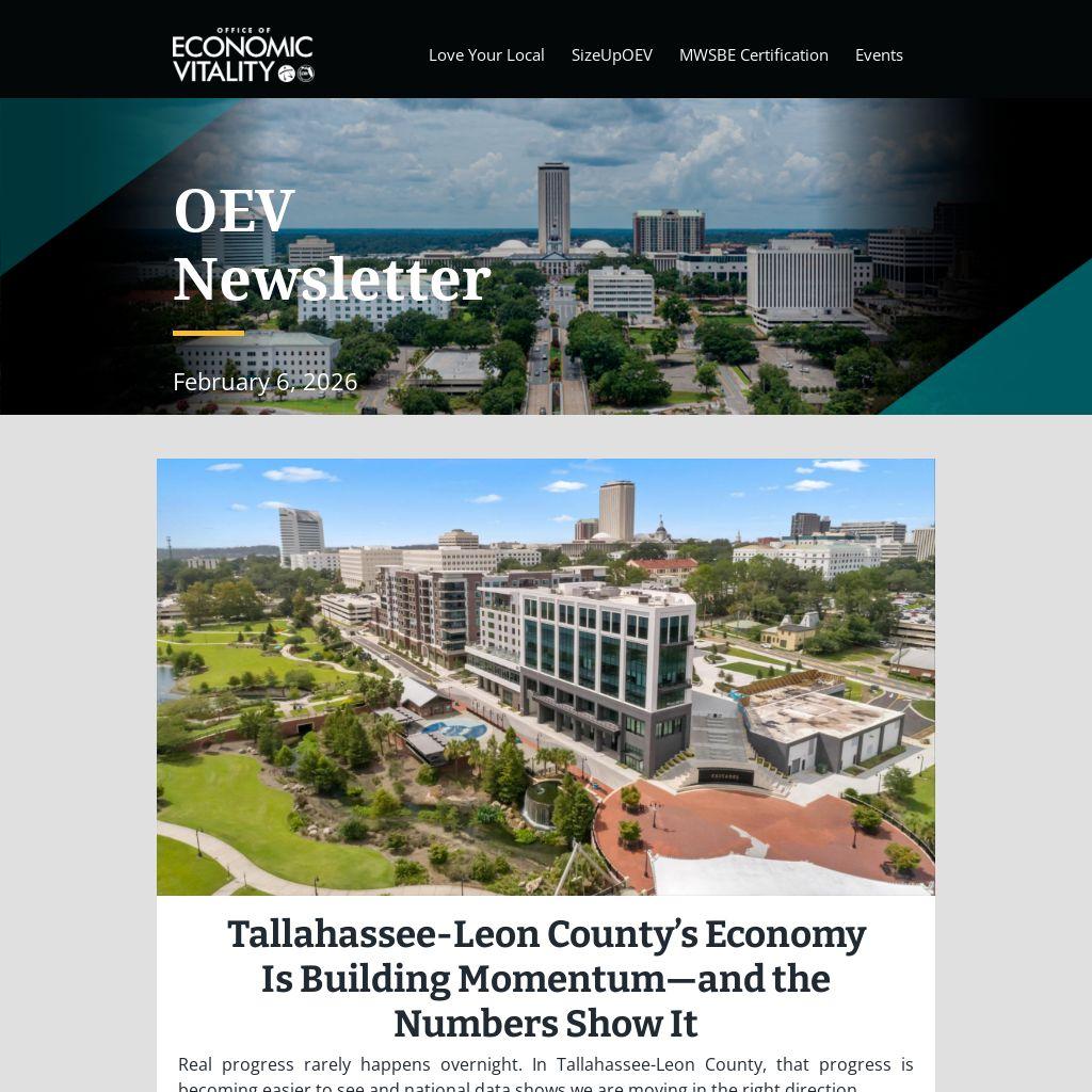 Delve into past issues of the OEV Newsletter to catch up on updates, insights, economic development initiatives, programs, and opportunities in Tallahassee-Leon County!