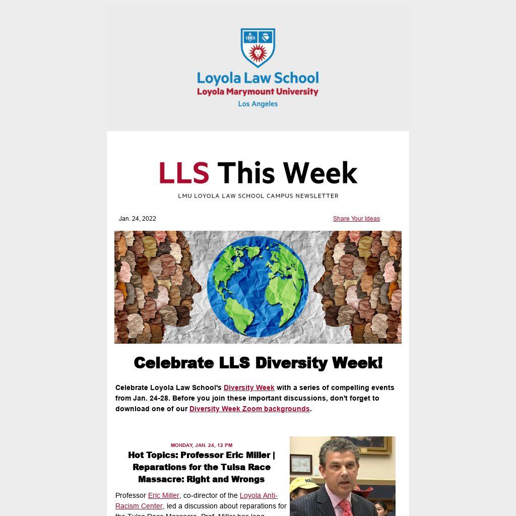 Event coordinators are encouraged to use the LLS Events Calendar for events they want promoted broadly. Note: You must select "Loyola Law School" in the department field in order for the event to display in the LLS roundup. Questions? Email us!