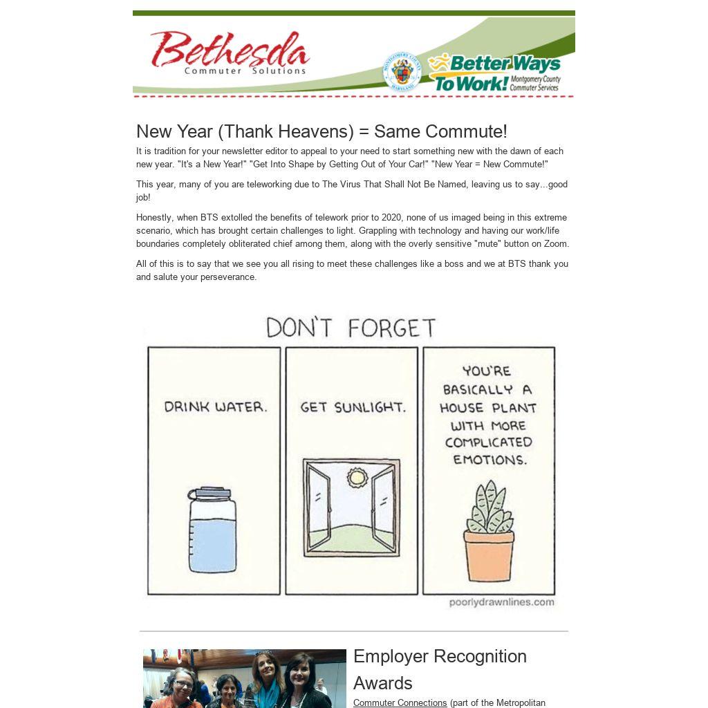 It is tradition for your newsletter editor to appeal to your need to start something new with the dawn of each new year. "It's a New Year!" "Get Into Shape by Getting Out of Your Car!" "New Year = New Commute!"