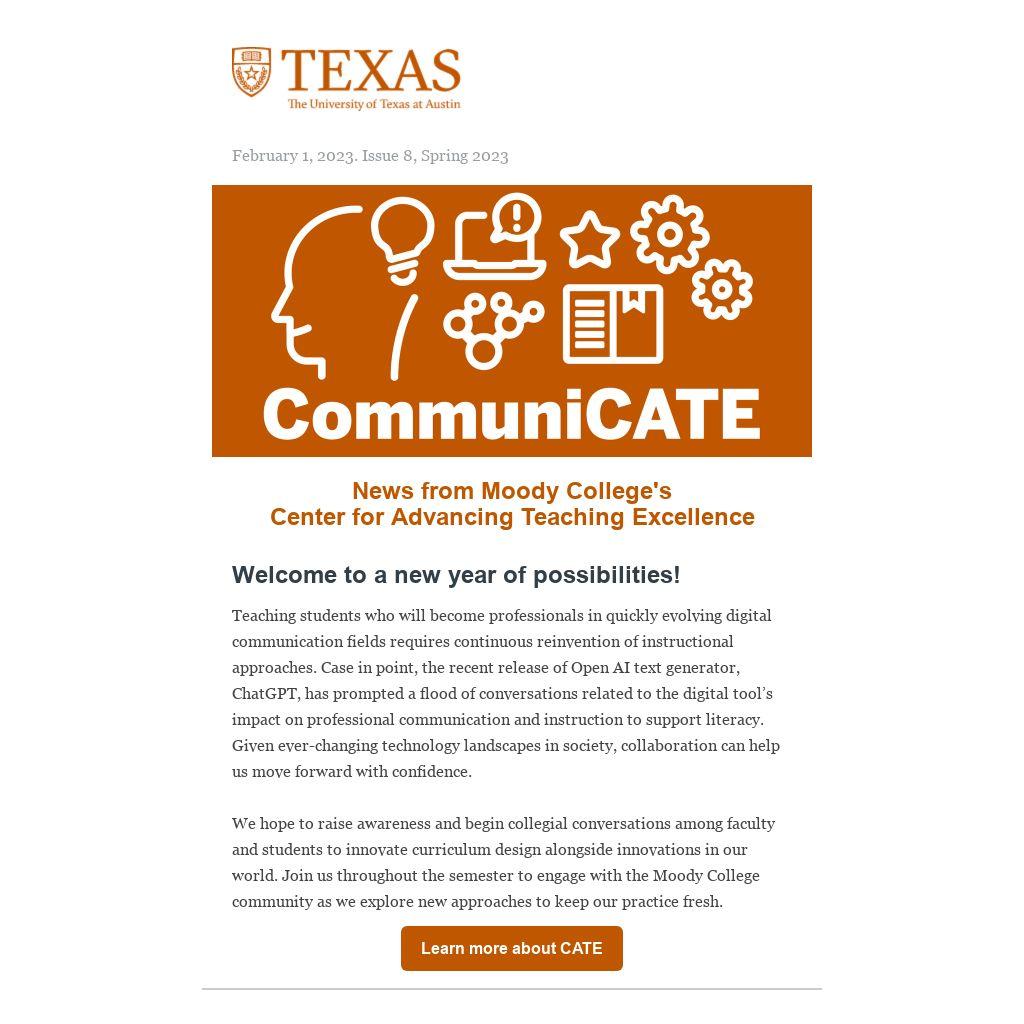 Follow CATE on social media to stay up to date on all things teaching and learning in Moody College.